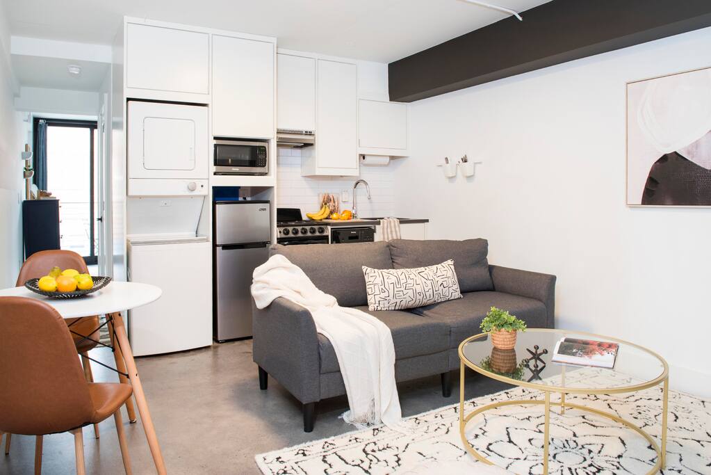 📍 Prime Location: Just steps from Ponce City Market, the BeltLine, and top Atlanta dining and entertainment spots, this space offers the best of city living. 🛋 Modern & Comfortable Stay: Designed like a boutique hotel room, this stylish industrial studio apartment features a private balcony, a well-equipped kitchen, and a cozy living area—perfect for solo travelers, couples, or professionals. 🌟 Amenities You’ll Love: ✔ Private balcony for fresh air and relaxation ✔ Access to a shared rooftop with breathtaking city views ✔ High-speed Wi-Fi ✔ Queen Bed ✔ Smart TV ✔ In-unit laundry facilities ✔ Complimentary parking ✔ Fully equipped kitchen for home-cooked meals ✔ Boutique-style furnishings and décor Living Room: Sofa, coffee table, and Smart TV Kitchen: Stainless steel compact refrigerator, stove/oven, microwave, and dishwasher. Basic dishes, cookware, and utensils are also provided. Basic spices, cooking oil, coffee filters, and/or pods are not always available. Dining Area: Table w/ 2 chairs. Hall Closet: Extra sheets and pillow, Iron and Ironing board Bedroom: Queen bed, 2 night tables, lamps, and a wall hvac fan/mini split. Private sliding doors to the balcony with one table and two chairs. Bathroom (En-suite): Single vanity, toilet, and tub/shower combination Whether you’re here for work or leisure, this elevated studio offers the perfect mix of industrial boutique hotel and modern home-like comfort in Atlanta. Book your stay today and experience boutique city living!