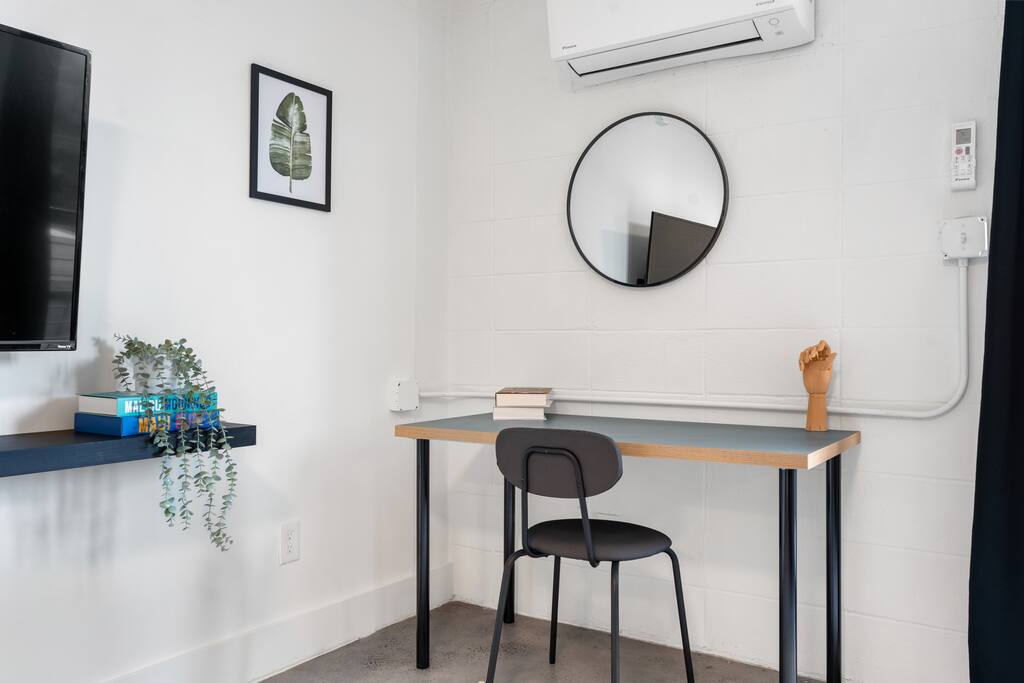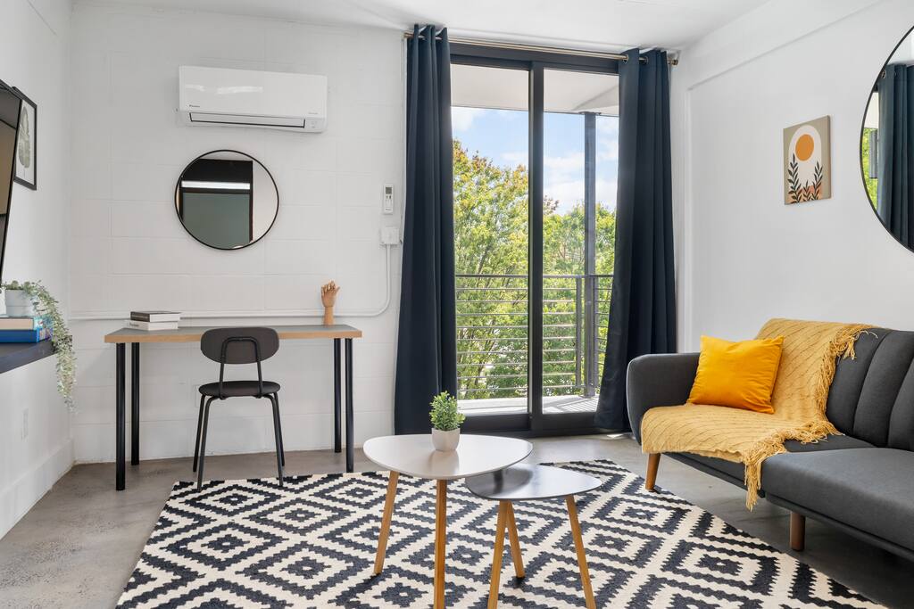 Boutique Hotel - Style Studio in Downtown Atlanta – Private Balcony & Rooftop Views Enjoy a boutique hotel experience in a one bedroom apartment located in a beautifully restored 1964 building, fully remodeled in 2020. Each unit features similar but unique decor, with the same layout and amenities for a consistent stay. Please note: The photos represent the style of our rooms, but your exact unit may have slight design variations.