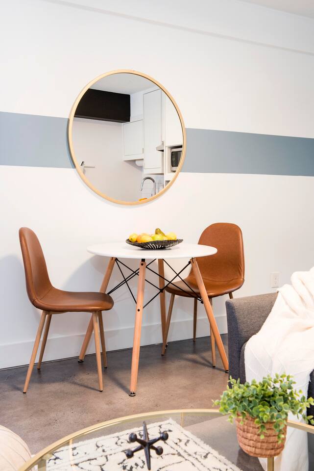 Boutique Hotel-Style Studio in Downtown Atlanta – Private Balcony & Rooftop Views Enjoy a boutique hotel experience in a studio apartment located in a beautifully restored 1964 building, fully remodeled in 2020. Each unit features similar but unique decor, with the same layout and amenities for a consistent stay. Please note: The photos represent the style of our rooms, but your exact unit may have slight design variations.