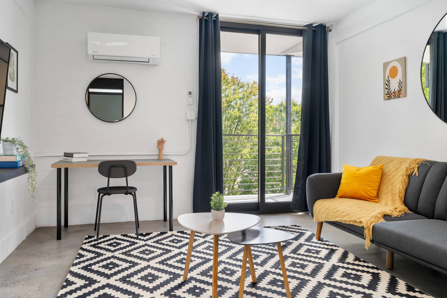 Boutique Hotel - Style Studio in Downtown Atlanta – Private Balcony & Rooftop Views Enjoy a boutique hotel experience in a one bedroom apartment located in a beautifully restored 1964 building, fully remodeled in 2020. Each unit features similar but unique decor, with the same layout and amenities for a consistent stay. Please note: The photos represent the style of our rooms, but your exact unit may have slight design variations.