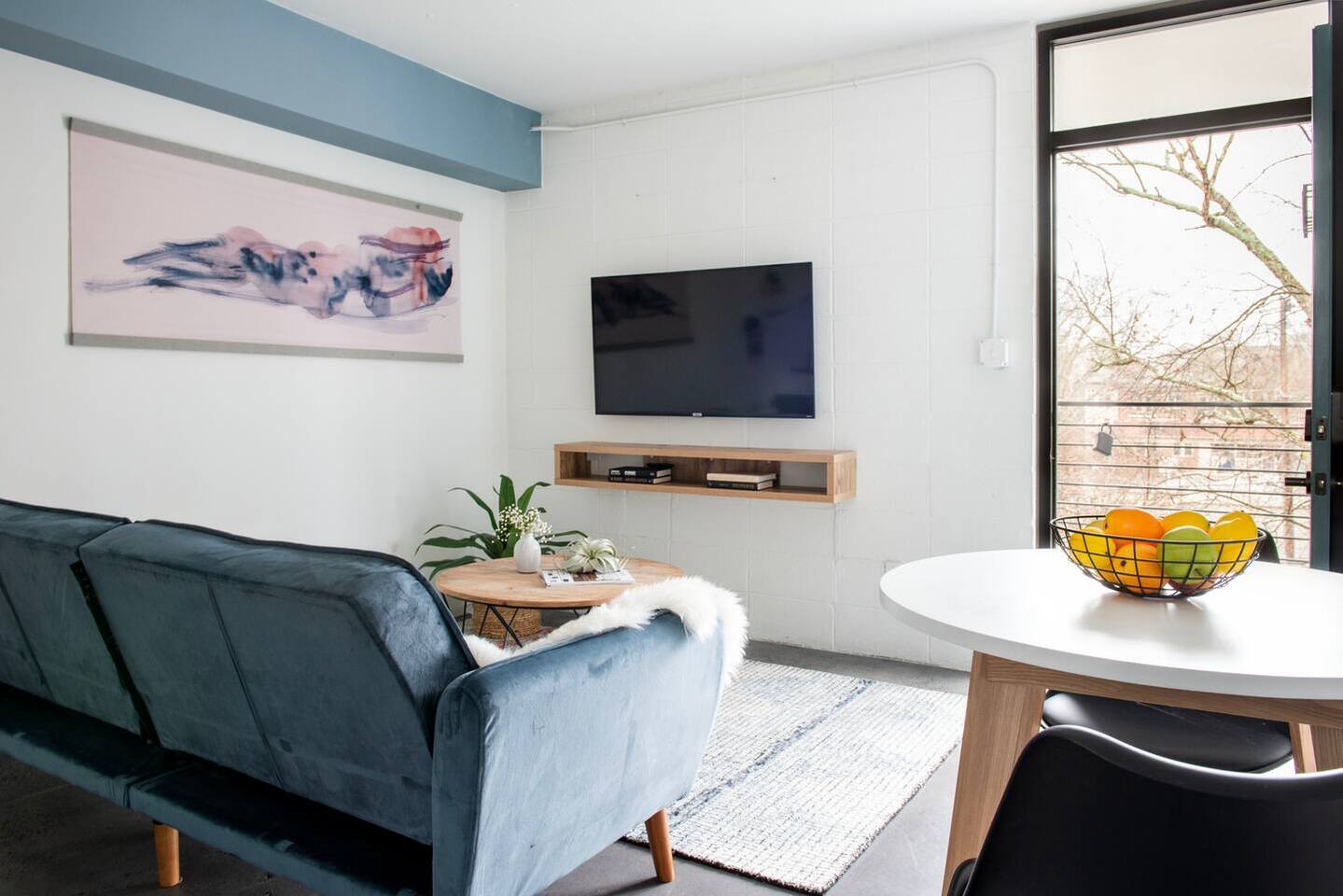 Boutique Hotel-Style Studio in Downtown Atlanta – Private Balcony & Rooftop Views Enjoy a boutique hotel experience in a studio apartment located in a beautifully restored 1964 building, fully remodeled in 2020. Each unit features similar but unique decor, with the same layout and amenities for a consistent stay. Please note: The photos represent the style of our rooms, but your exact unit may have slight design variations.