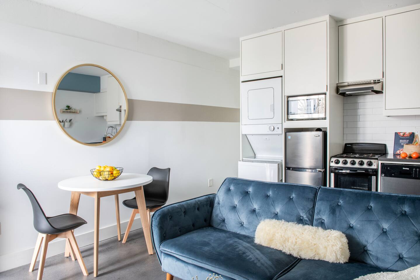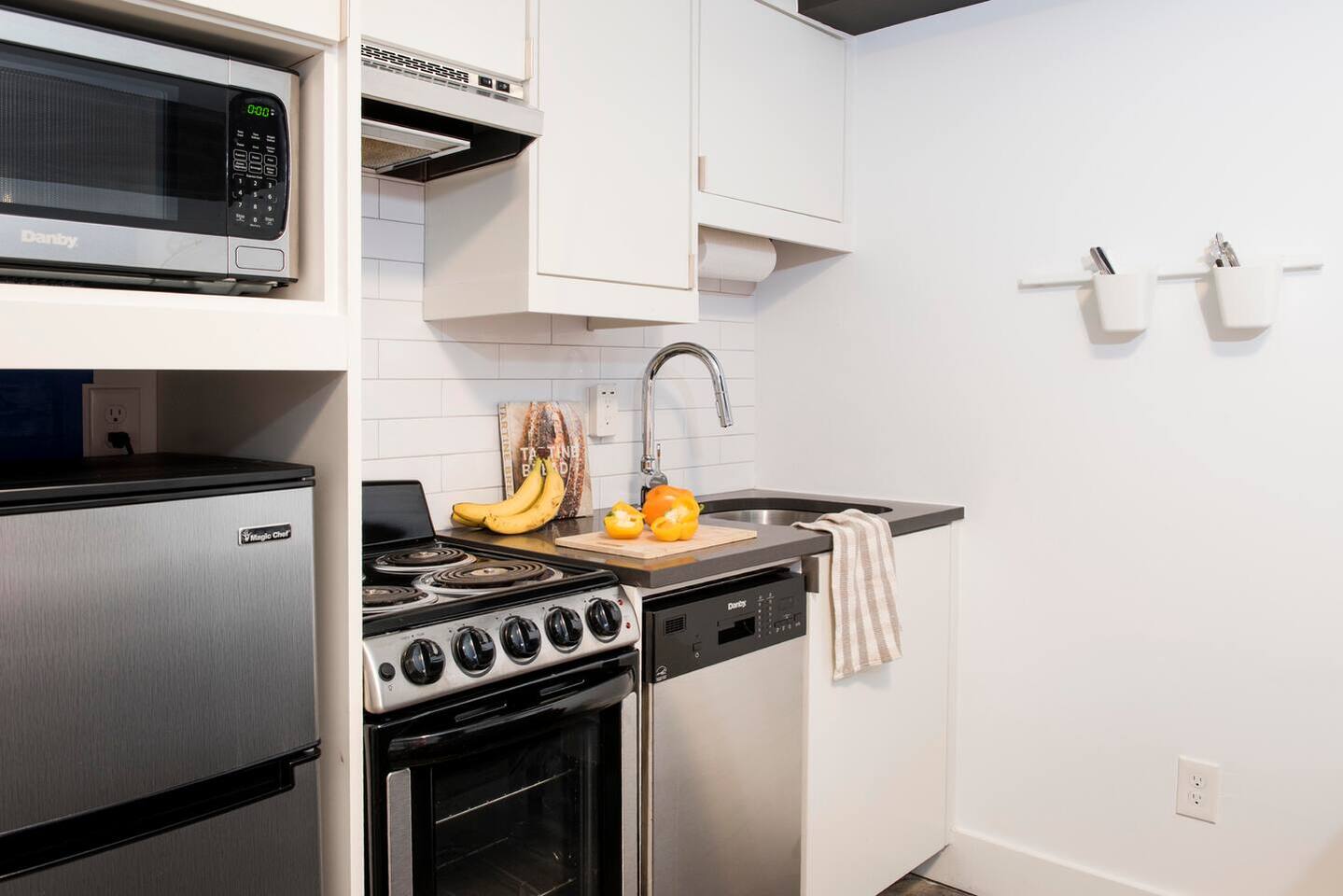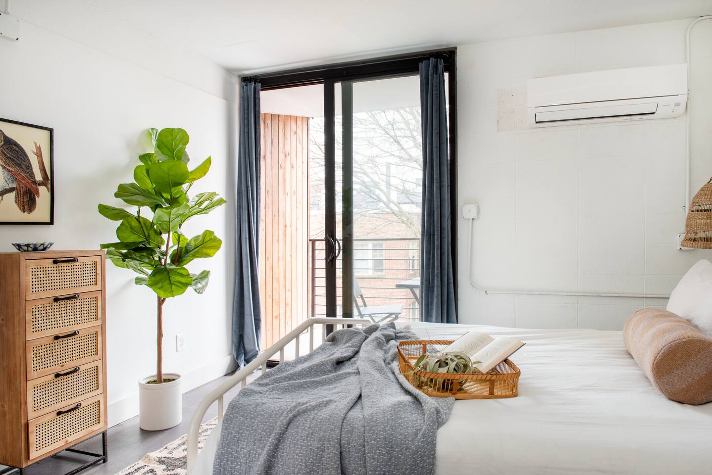📍 Prime Location: Just steps from Ponce City Market, the BeltLine, and top Atlanta dining and entertainment spots, this space offers the best of city living. 🛋 Modern & Comfortable Stay: Designed like a boutique hotel room, this stylish industrial studio apartment features a private balcony, a well-equipped kitchen, and a cozy living area—perfect for solo travelers, couples, or professionals. 🌟 Amenities You’ll Love: ✔ Private balcony for fresh air and relaxation ✔ Access to a shared rooftop with breathtaking city views ✔ High-speed Wi-Fi ✔ Queen Bed ✔ Smart TV ✔ In-unit laundry facilities ✔ Complimentary parking ✔ Fully equipped kitchen for home-cooked meals ✔ Boutique-style furnishings and décor Living Room: Sofa, coffee table, and Smart TV Kitchen: Stainless steel compact refrigerator, stove/oven, microwave, and dishwasher. Basic dishes, cookware, and utensils are also provided. Basic spices, cooking oil, coffee filters, and/or pods are not always available. Dining Area: Table w/ 2 chairs. Hall Closet: Extra sheets and pillow, Iron and Ironing board Bedroom: Queen bed, 2 night tables, lamps, and a wall hvac fan/mini split. Private sliding doors to the balcony with one table and two chairs. Bathroom (En-suite): Single vanity, toilet, and tub/shower combination Whether you’re here for work or leisure, this elevated studio offers the perfect mix of industrial boutique hotel and modern home-like comfort in Atlanta. Book your stay today and experience boutique city living!