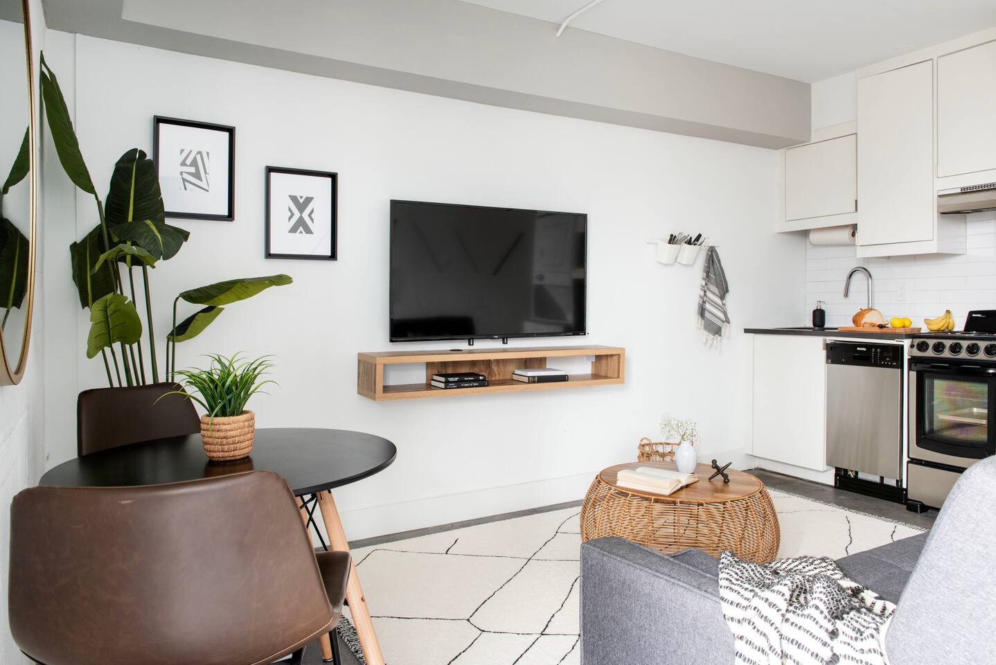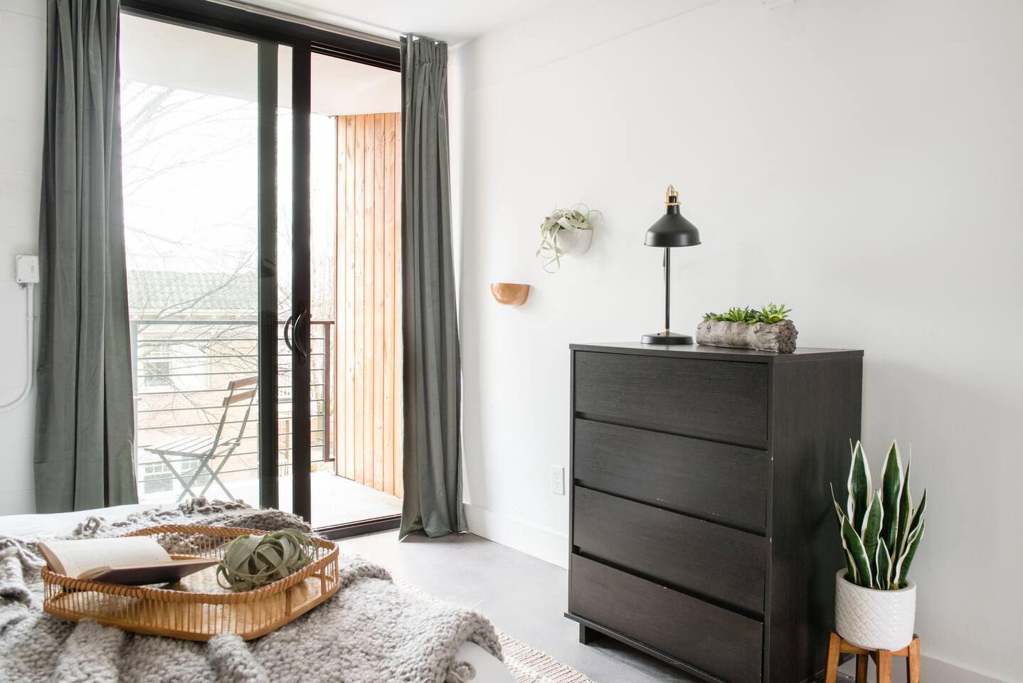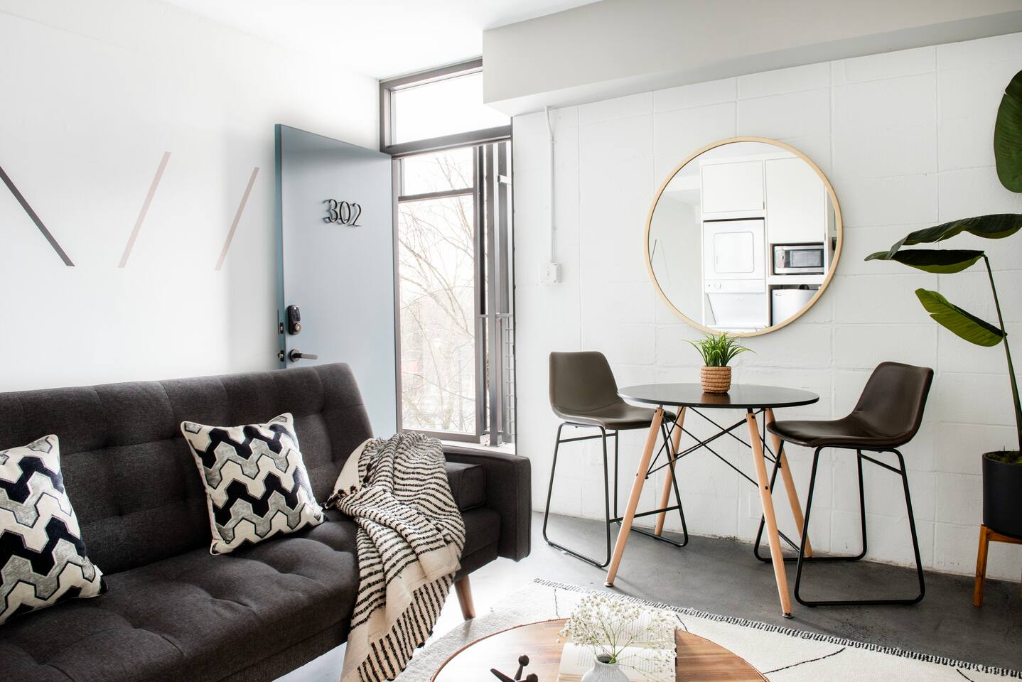 Boutique Hotel-Style Studio in Downtown Atlanta – Private Balcony & Rooftop Views Enjoy a boutique hotel experience in a studio apartment located in a beautifully restored 1964 building, fully remodeled in 2020. Each unit features similar but unique decor, with the same layout and amenities for a consistent stay. Please note: The photos represent the style of our rooms, but your exact unit may have slight design variations.