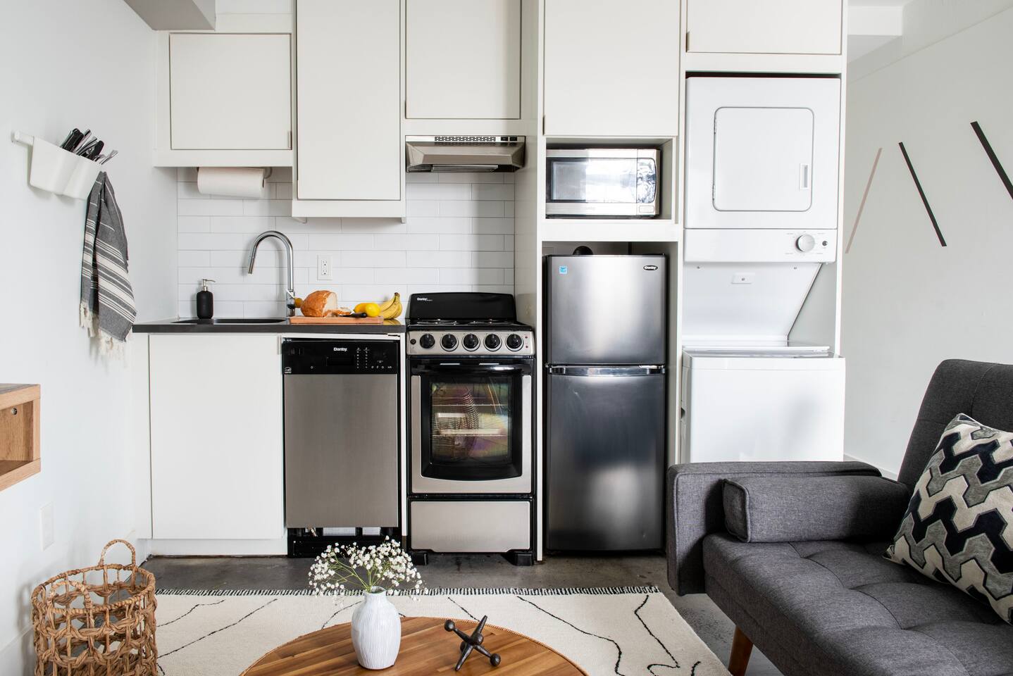 📍 Prime Location: Just steps from Ponce City Market, the BeltLine, and top Atlanta dining and entertainment spots, this space offers the best of city living. 🛋 Modern & Comfortable Stay: Designed like a boutique hotel room, this stylish industrial studio apartment features a private balcony, a well-equipped kitchen, and a cozy living area—perfect for solo travelers, couples, or professionals. 🌟 Amenities You’ll Love: ✔ Private balcony for fresh air and relaxation ✔ Access to a shared rooftop with breathtaking city views ✔ High-speed Wi-Fi ✔ Queen Bed ✔ Smart TV ✔ In-unit laundry facilities ✔ Complimentary parking ✔ Fully equipped kitchen for home-cooked meals ✔ Boutique-style furnishings and décor Living Room: Sofa, coffee table, and Smart TV Kitchen: Stainless steel compact refrigerator, stove/oven, microwave, and dishwasher. Basic dishes, cookware, and utensils are also provided. Basic spices, cooking oil, coffee filters, and/or pods are not always available. Dining Area: Table w/ 2 chairs. Hall Closet: Extra sheets and pillow, Iron and Ironing board Bedroom: Queen bed, 2 night tables, lamps, and a wall hvac fan/mini split. Private sliding doors to the balcony with one table and two chairs. Bathroom (En-suite): Single vanity, toilet, and tub/shower combination Whether you’re here for work or leisure, this elevated studio offers the perfect mix of industrial boutique hotel and modern home-like comfort in Atlanta. Book your stay today and experience boutique city living!