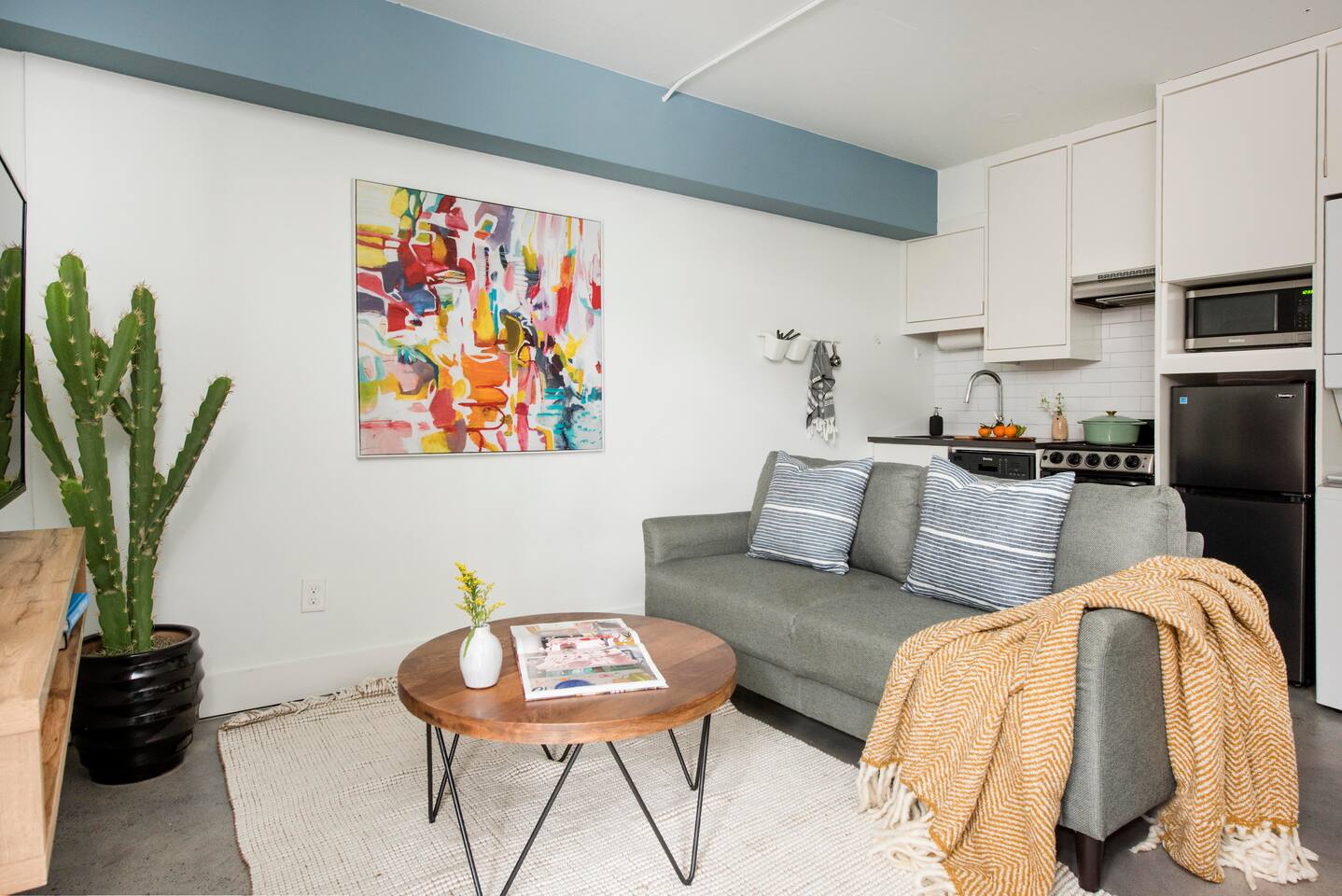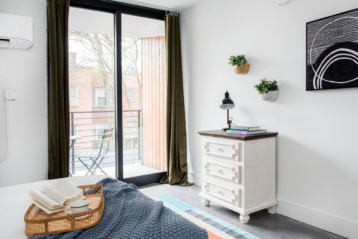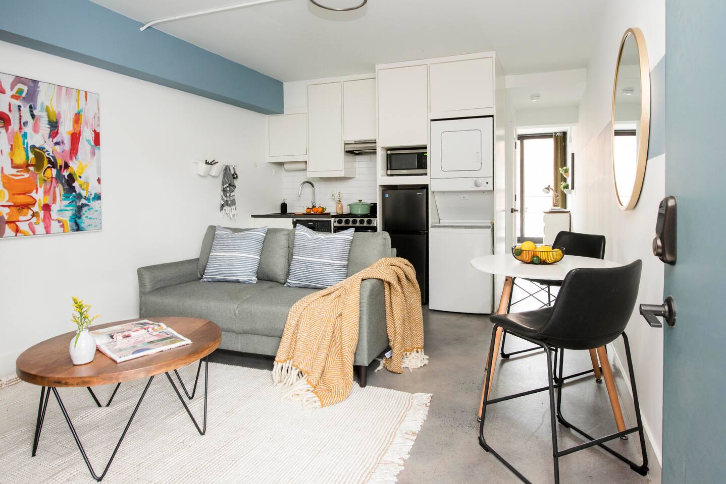 Boutique Hotel-Style Studio in Downtown Atlanta – Private Balcony & Rooftop Views Enjoy a boutique hotel experience in a studio apartment located in a beautifully restored 1964 building, fully remodeled in 2020. Each unit features similar but unique decor, with the same layout and amenities for a consistent stay. Please note: The photos represent the style of our rooms, but your exact unit may have slight design variations.