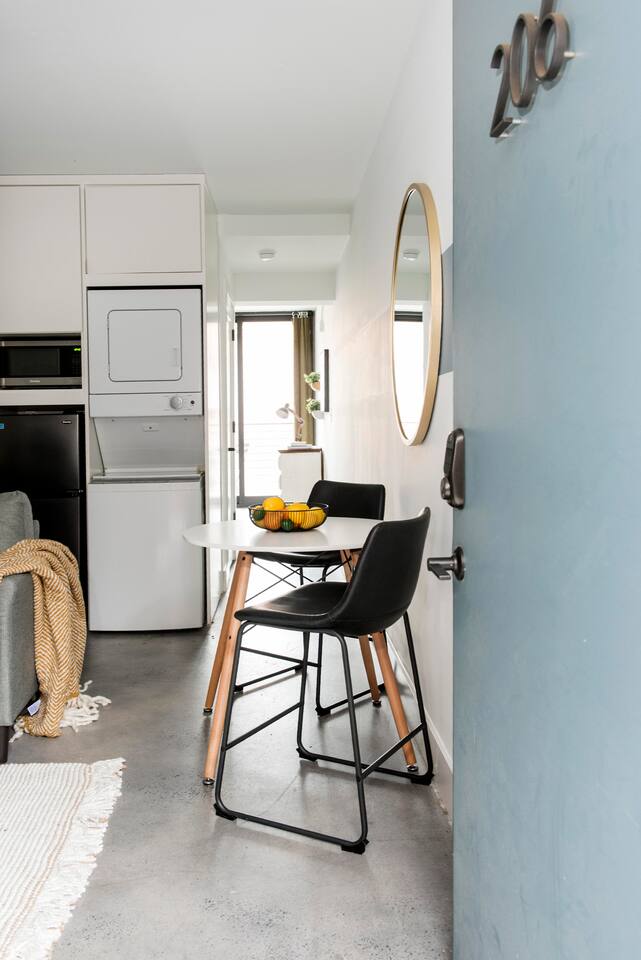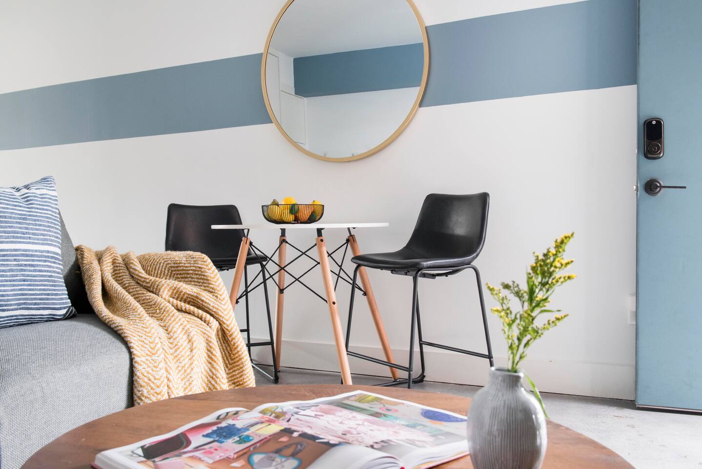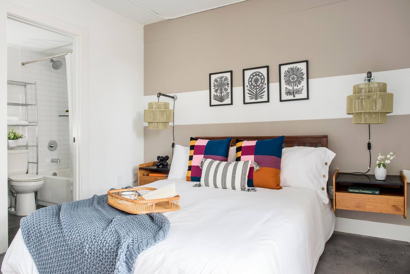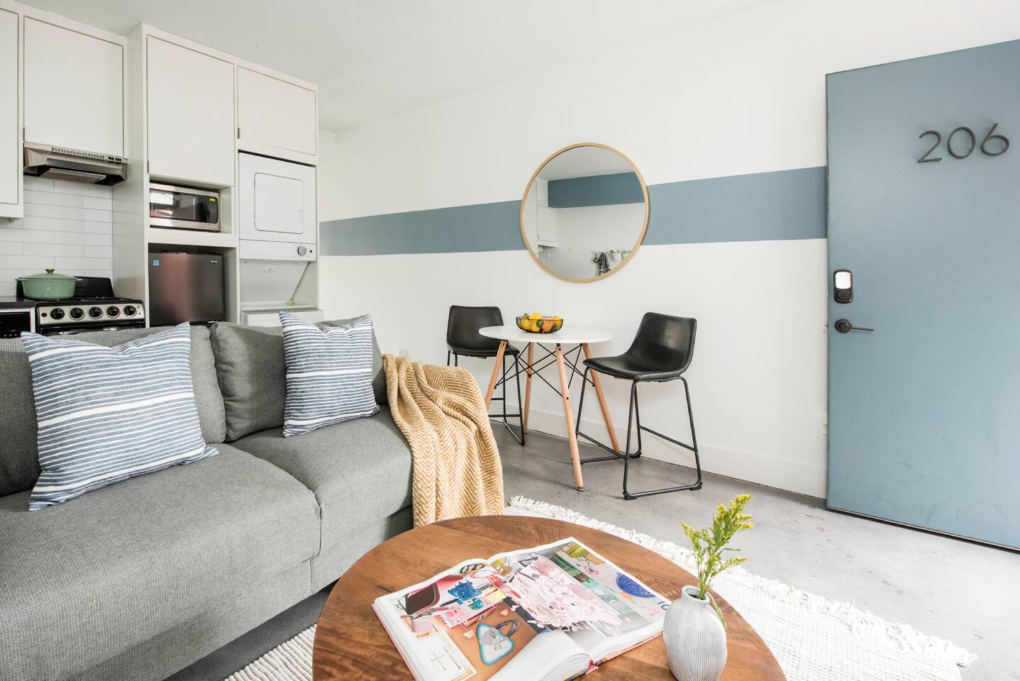 Boutique Hotel-Style Studio in Downtown Atlanta – Private Balcony & Rooftop Views Enjoy a boutique hotel experience in a studio apartment located in a beautifully restored 1964 building, fully remodeled in 2020. Each unit features similar but unique decor, with the same layout and amenities for a consistent stay. Please note: The photos represent the style of our rooms, but your exact unit may have slight design variations.