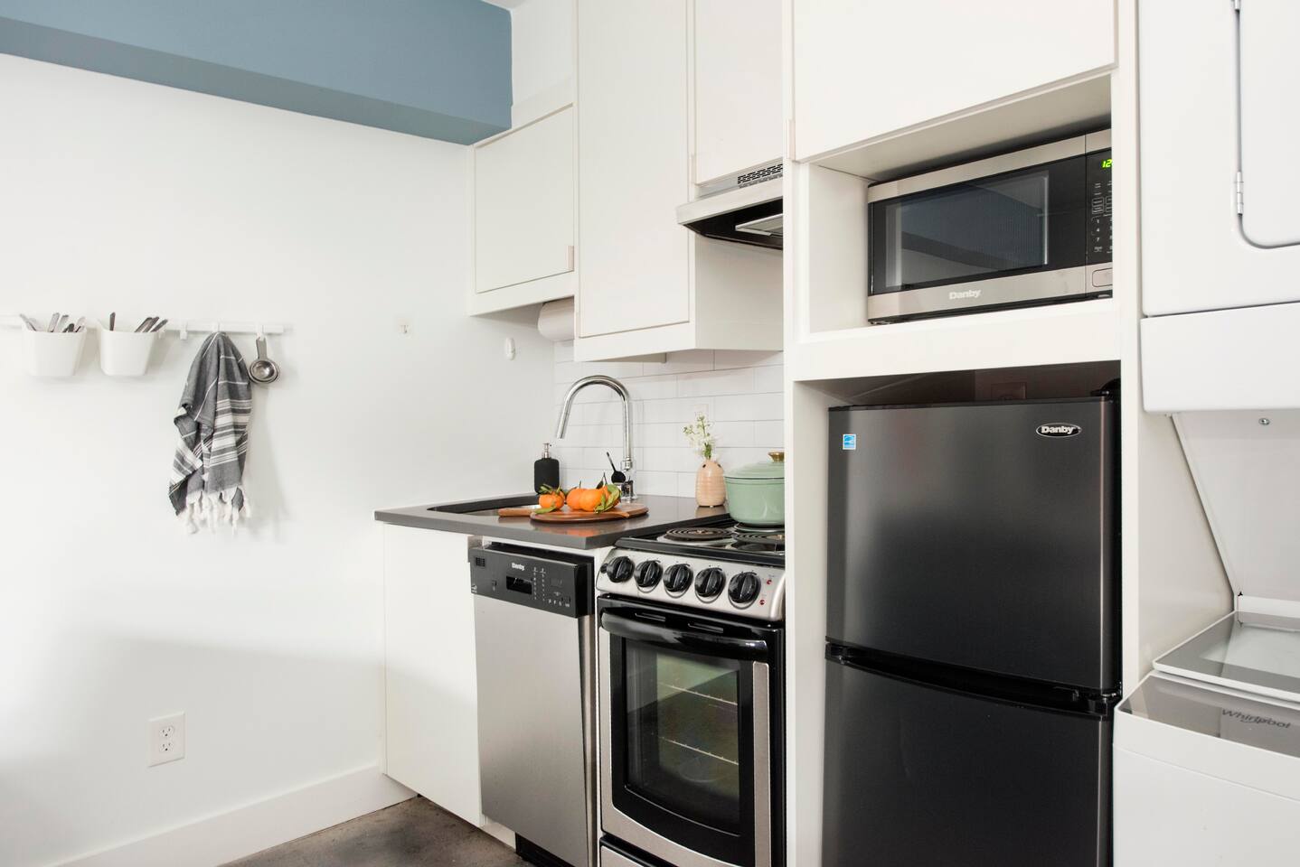 📍 Prime Location: Just steps from Ponce City Market, the BeltLine, and top Atlanta dining and entertainment spots, this space offers the best of city living. 🛋 Modern & Comfortable Stay: Designed like a boutique hotel room, this stylish industrial studio apartment features a private balcony, a well-equipped kitchen, and a cozy living area—perfect for solo travelers, couples, or professionals. 🌟 Amenities You’ll Love: ✔ Private balcony for fresh air and relaxation ✔ Access to a shared rooftop with breathtaking city views ✔ High-speed Wi-Fi ✔ Queen Bed ✔ Smart TV ✔ In-unit laundry facilities ✔ Complimentary parking ✔ Fully equipped kitchen for home-cooked meals ✔ Boutique-style furnishings and décor Living Room: Sofa, coffee table, and Smart TV Kitchen: Stainless steel compact refrigerator, stove/oven, microwave, and dishwasher. Basic dishes, cookware, and utensils are also provided. Basic spices, cooking oil, coffee filters, and/or pods are not always available. Dining Area: Table w/ 2 chairs. Hall Closet: Extra sheets and pillow, Iron and Ironing board Bedroom: Queen bed, 2 night tables, lamps, and a wall hvac fan/mini split. Private sliding doors to the balcony with one table and two chairs. Bathroom (En-suite): Single vanity, toilet, and tub/shower combination Whether you’re here for work or leisure, this elevated studio offers the perfect mix of industrial boutique hotel and modern home-like comfort in Atlanta. Book your stay today and experience boutique city living!
