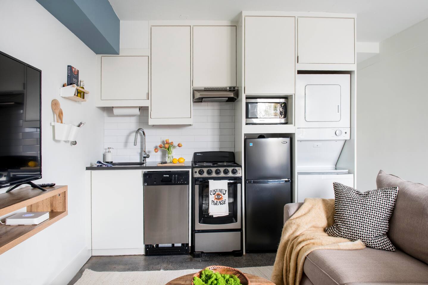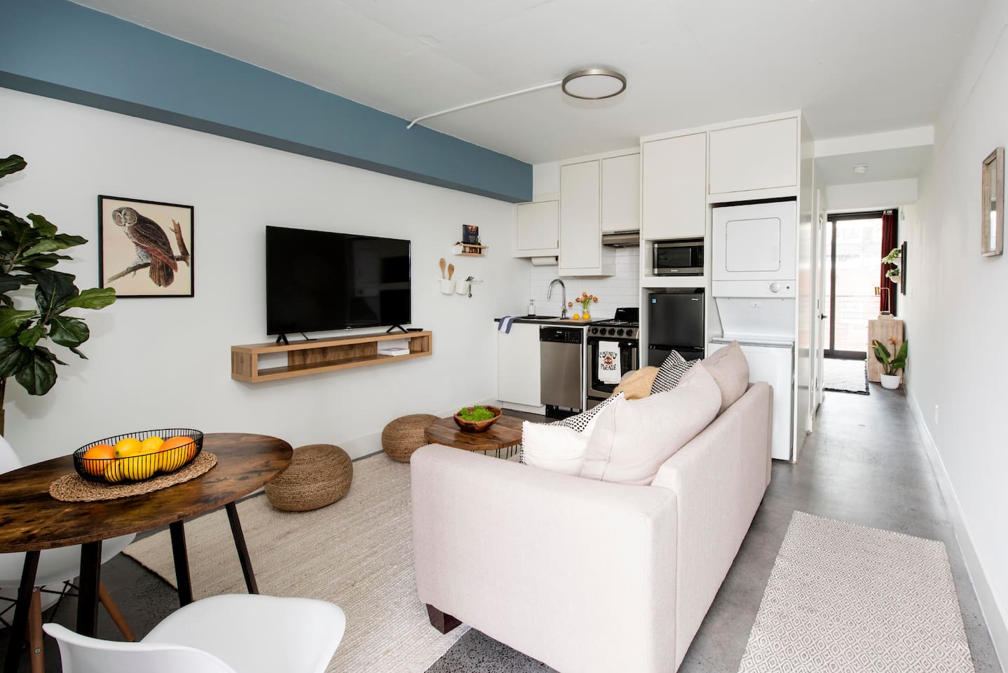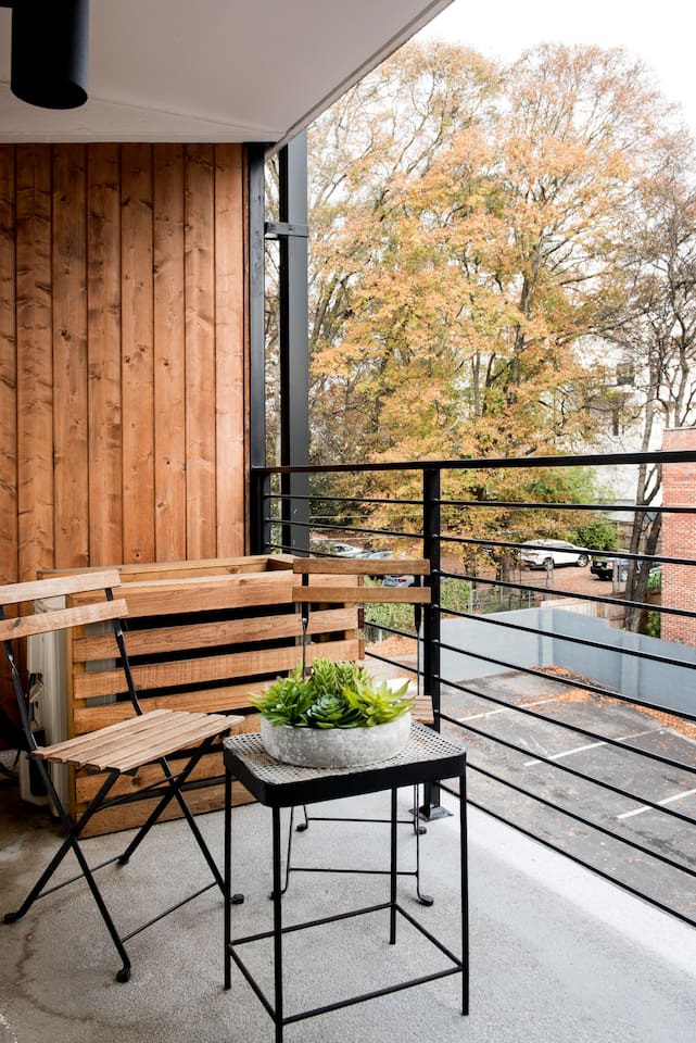 📍 Prime Location: Just steps from Ponce City Market, the BeltLine, and top Atlanta dining and entertainment spots, this space offers the best of city living. 🛋 Modern & Comfortable Stay: Designed like a boutique hotel room, this stylish industrial studio apartment features a private balcony, a well-equipped kitchen, and a cozy living area—perfect for solo travelers, couples, or professionals. 🌟 Amenities You’ll Love: ✔ Private balcony for fresh air and relaxation ✔ Access to a shared rooftop with breathtaking city views ✔ High-speed Wi-Fi ✔ Queen Bed ✔ Smart TV ✔ In-unit laundry facilities ✔ Complimentary parking ✔ Fully equipped kitchen for home-cooked meals ✔ Boutique-style furnishings and décor Living Room: Sofa, coffee table, and Smart TV Kitchen: Stainless steel compact refrigerator, stove/oven, microwave, and dishwasher. Basic dishes, cookware, and utensils are also provided. Basic spices, cooking oil, coffee filters, and/or pods are not always available. Dining Area: Table w/ 2 chairs. Hall Closet: Extra sheets and pillow, Iron and Ironing board Bedroom: Queen bed, 2 night tables, lamps, and a wall hvac fan/mini split. Private sliding doors to the balcony with one table and two chairs. Bathroom (En-suite): Single vanity, toilet, and tub/shower combination Whether you’re here for work or leisure, this elevated studio offers the perfect mix of industrial boutique hotel and modern home-like comfort in Atlanta. Book your stay today and experience boutique city living!